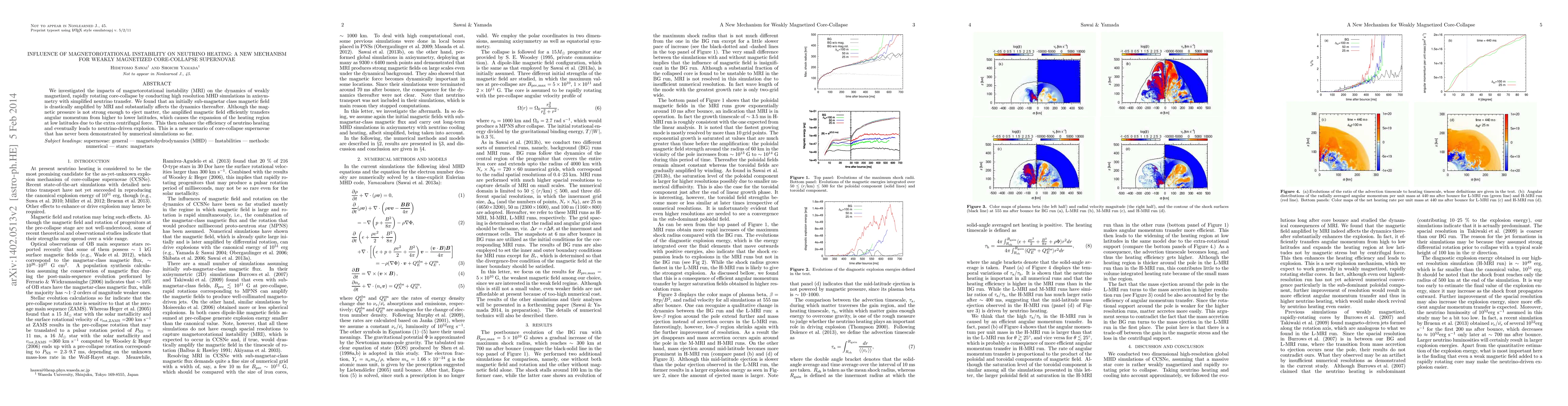 We investigated the impacts of magnetorotational instability (MRI) on the dynamics of weakly magnetized, rapidly rotating core-collapse by conducting high resolution MHD simulations in axisymmetry with simplified neutrino transfer. We found that an initially sub-magnetar class magnetic field is drastically amplified by MRI and substantially affects the dynamics thereafter. Although the magnetic pressure is not strong enough to eject matter, the amplified magnetic field efficiently transfers angular momentum from higher to lower latitudes, which causes the expansion of the heating region at low latitudes due to the extra centrifugal force. This then enhance the efficiency of neutrino heating and eventually leads to neutrino-driven explosion. This is a new scenario of core-collapse supernovae that has never been demonstrated by numerical simulations so far.
