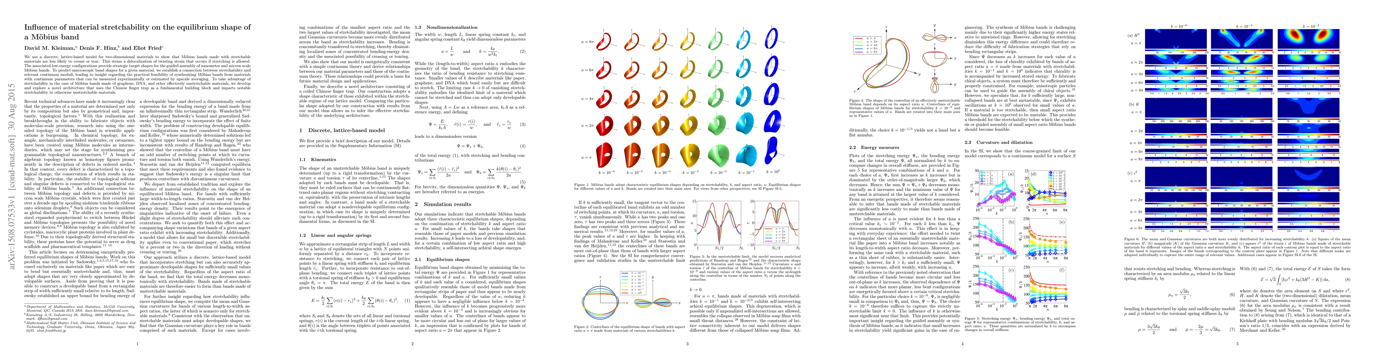The research demonstrates that stretchable materials reduce creasing and tearing in Möbius bands, enabling predictable shapes via continuum moduli connection. A novel architecture using Chinese finger trap is proposed to impart stretchability to otherwise unstretchable materials like graphene and DNA.