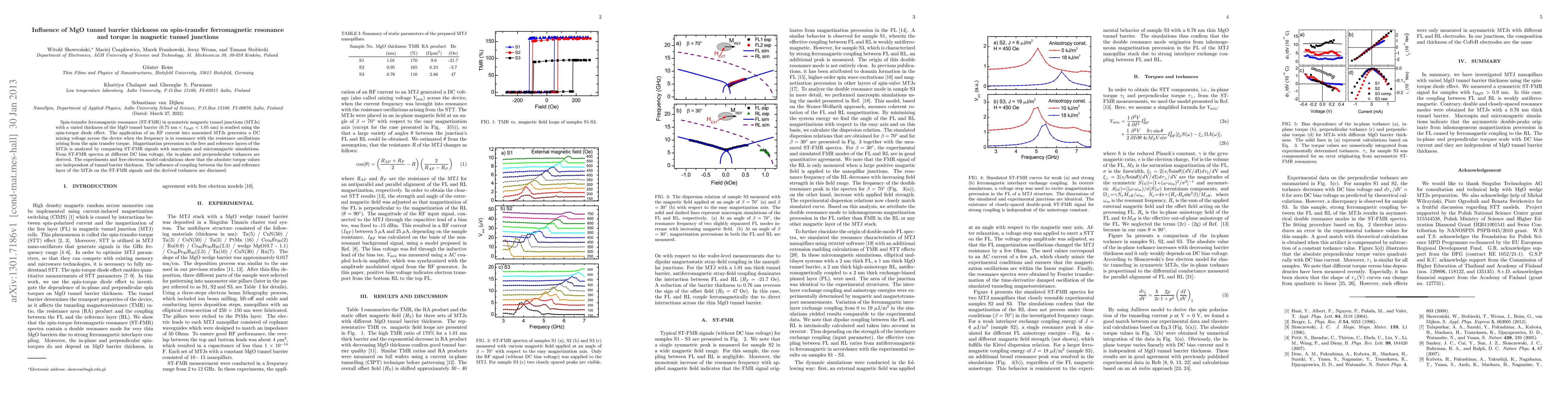 This study investigates the effect of varying MgO tunnel barrier thickness on spin-transfer ferromagnetic resonance (ST-FMR) and torque in magnetic tunnel junctions (MTJs). Results indicate that the absolute torque values remain unaffected by the barrier thickness, while the coupling between the free and reference layers influences the ST-FMR signals and derived torkances.