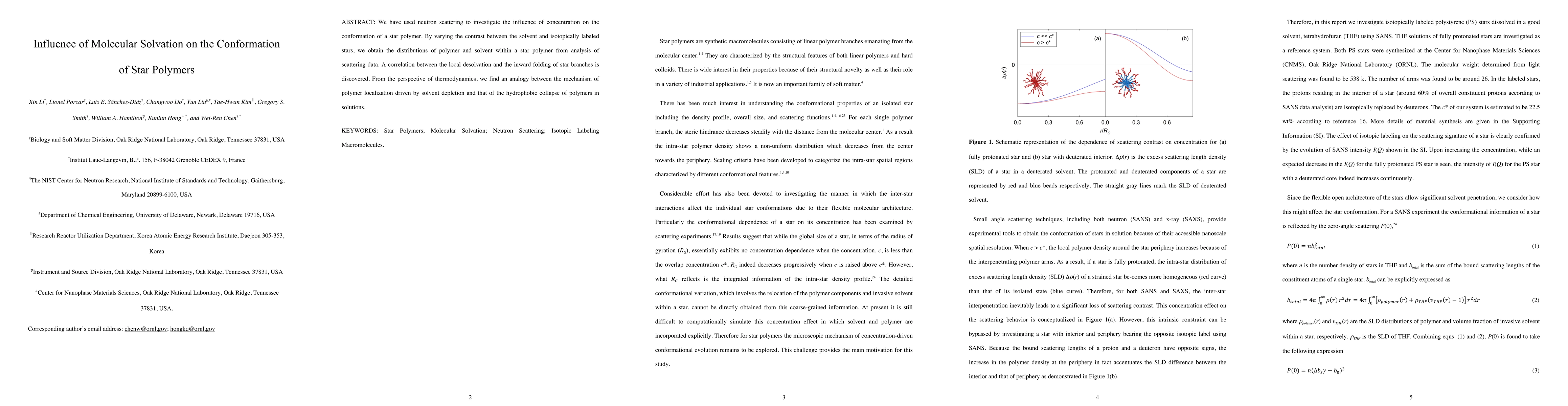 Researchers used neutron scattering to study how solvent molecules affect star polymer conformation, discovering a correlation between desolvation and branch folding, and finding an analogy with hydrophobic collapse in solutions.