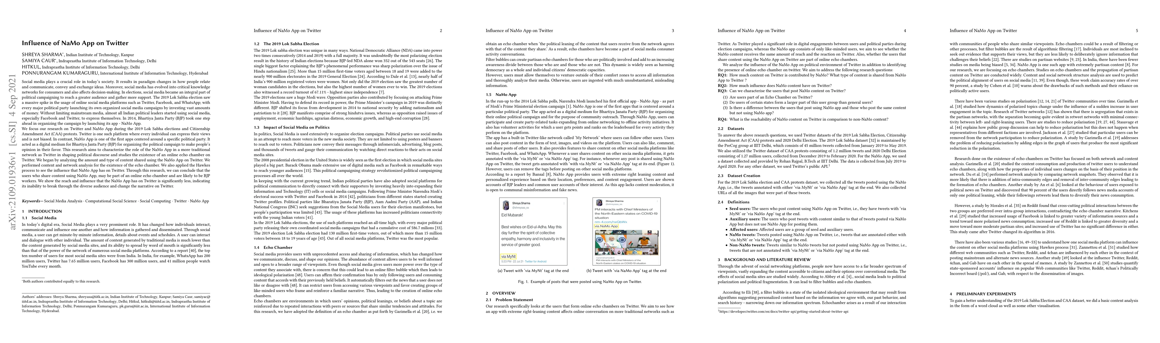 The NaMo App on Twitter had a limited influence on shaping political discourse during the 2019 Lok Sabha election, with users who shared app content potentially forming an online echo chamber primarily consisting of BJP workers.