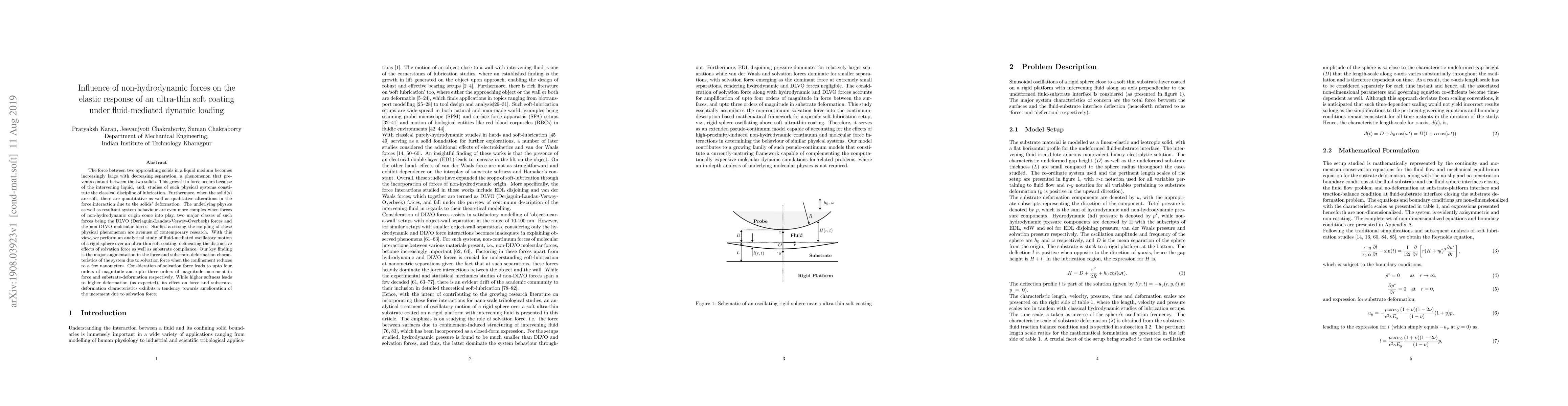 This study investigates the impact of non-hydrodynamic forces on the elastic response of an ultra-thin soft coating under fluid-mediated dynamic loading, revealing significant augmentation in force and substrate deformation due to solvation force when the separation is reduced to nanometer scales. The softness of the coating tends to increase deformation but mitigates the solvation force-induced increment in force.