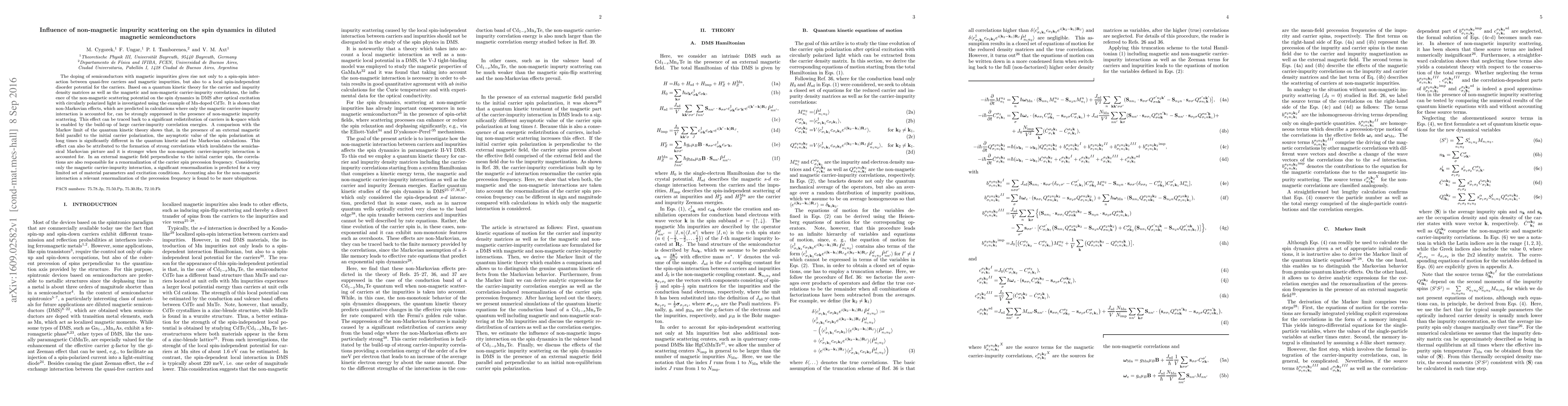 This paper investigates the impact of non-magnetic impurity scattering on spin dynamics in diluted magnetic semiconductors (DMS), specifically Mn-doped CdTe, using quantum kinetic theory. It finds that non-magnetic scattering can suppress non-Markovian effects and significantly alter spin dynamics, invalidating the semiclassical Markovian picture.
