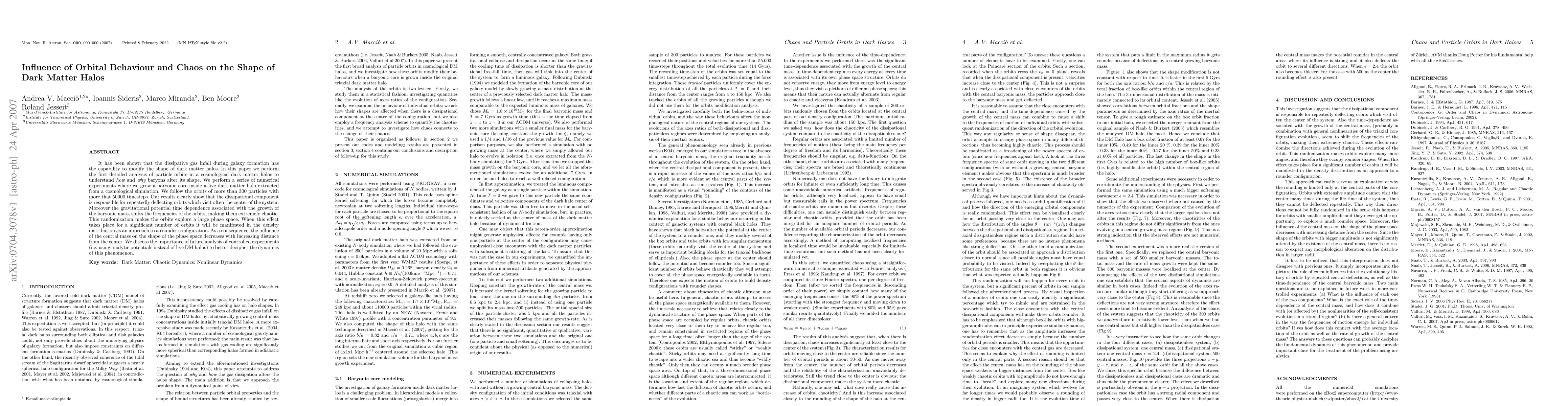 This paper explores how dissipative gas infall during galaxy formation alters the shape of dark matter halos through detailed analysis of particle orbits. The study finds that the chaotic gravitational potential shifts caused by baryonic mass growth lead to a more rounded density distribution, diminishing the central mass influence on the phase space.
