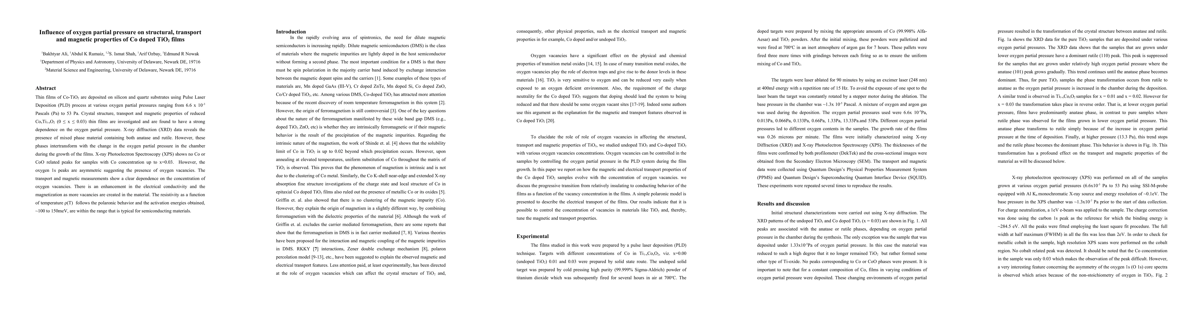 Thin films of Co-TiO2 are deposited on silicon and quartz substrates using