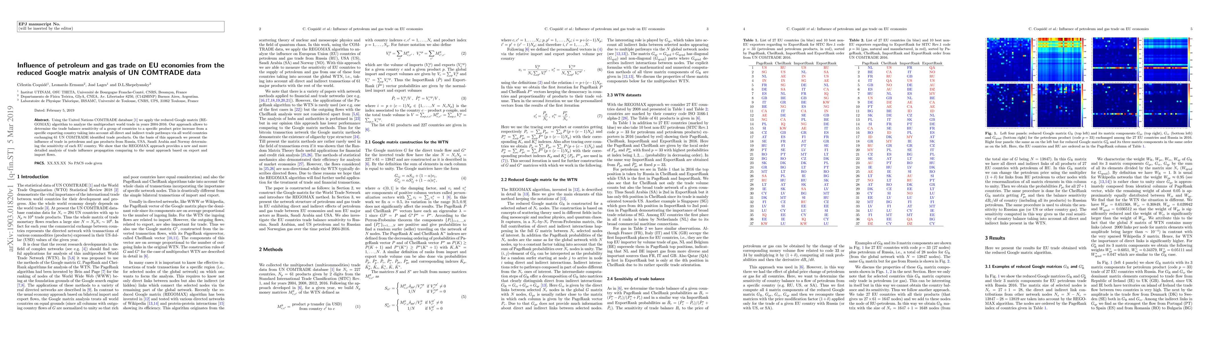This paper uses the reduced Google matrix (REGOMAX) algorithm on UN COMTRADE data to analyze the influence of petroleum and gas trade on EU economies from 2004-2016. The study reveals the sensitivity of each EU country to price changes in these products from major exporting countries, offering a more detailed analysis than traditional export and import flow methods.