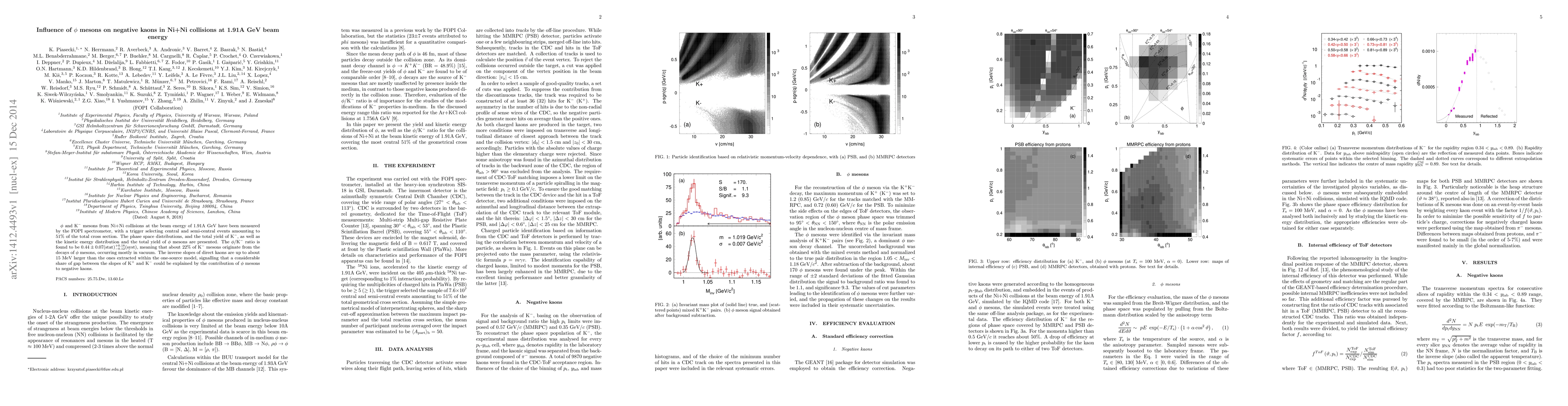 $\phi$ and K$^-$ mesons from Ni+Ni collisions at the beam energy of 1.91A GeV have been measured by the FOPI spectrometer, with a trigger selecting central and semi-central events amounting to 51% of the total cross section. The phase space distributions, and the total yield of K$^-$, as well as the kinetic energy distribution and the total yield of $\phi$ mesons are presented. The $\phi$\K$^-$ ratio is found to be $0.44 \pm 0.07(\text{stat}) ^{+0.18}_{-0.12} (\text{syst})$, meaning that about 22% of K$^-$ mesons originate from the decays of $\phi$ mesons, occurring mostly in vacuum. The inverse slopes of direct kaons are up to about 15 MeV larger than the ones extracted within the one-source model, signalling that a considerable share of gap between the slopes of K$^+$ and K$^-$ could be explained by the contribution of $\phi$ mesons to negative kaons.