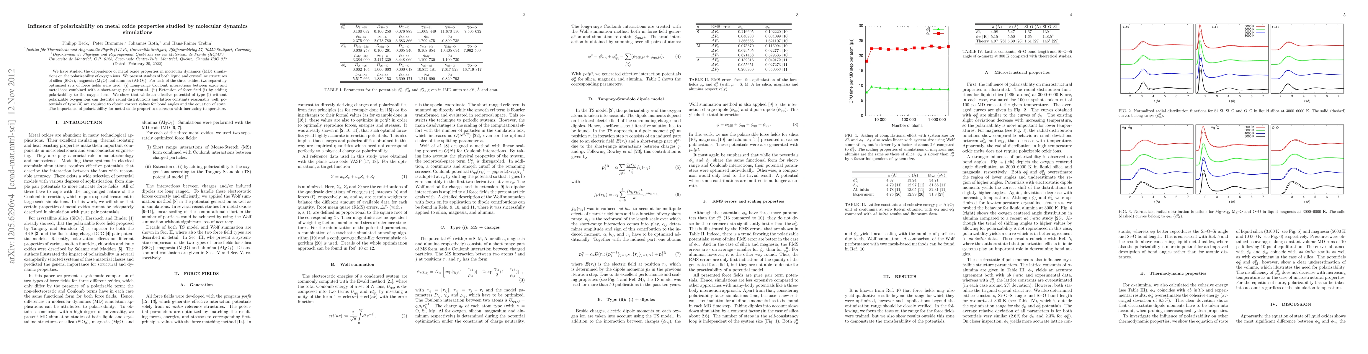 Molecular dynamics simulations show that polarizability of oxygen ions is crucial for accurately describing metal oxide properties, including bond angles and lattice constants, especially at lower temperatures.