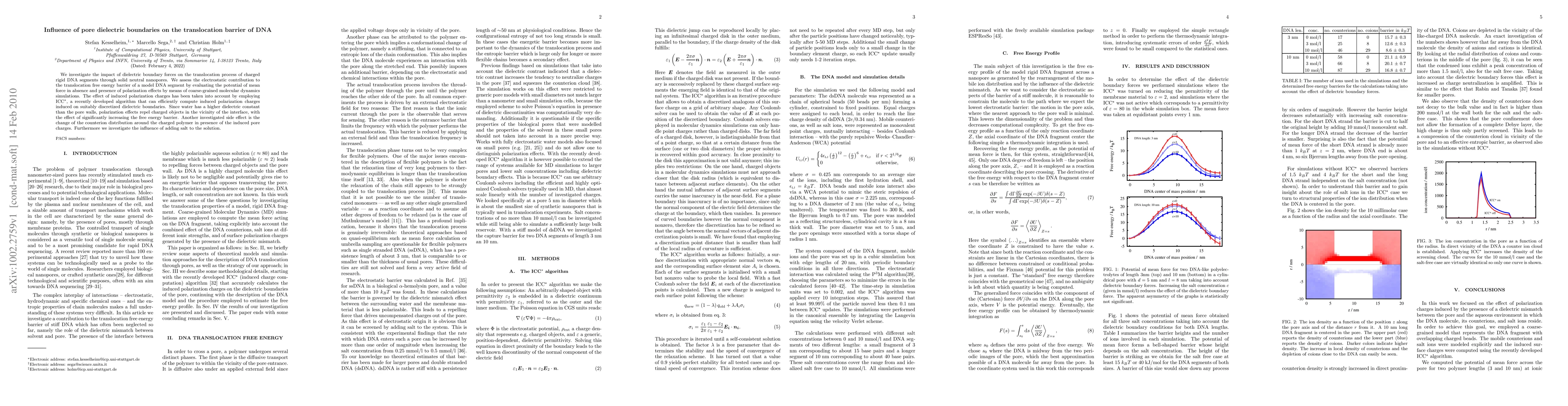 This study examines how dielectric boundary forces affect the translocation of charged DNA through neutral nanopores, finding that polarization effects significantly increase the free energy barrier due to repulsion near the interface. The research also explores changes in counterion distribution and the influence of added salt on these effects.