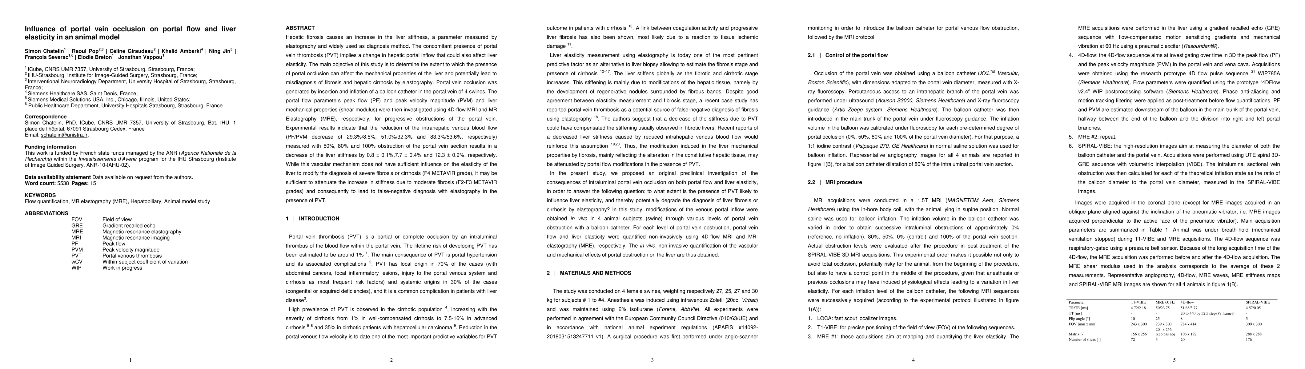 This study investigates how portal vein occlusion affects liver elasticity in swine using 4D-flow MRI and MR elastography. It finds that while severe fibrosis or cirrhosis diagnosis remains unaffected, moderate fibrosis diagnoses may be falsely negative due to reduced liver stiffness from portal occlusion.