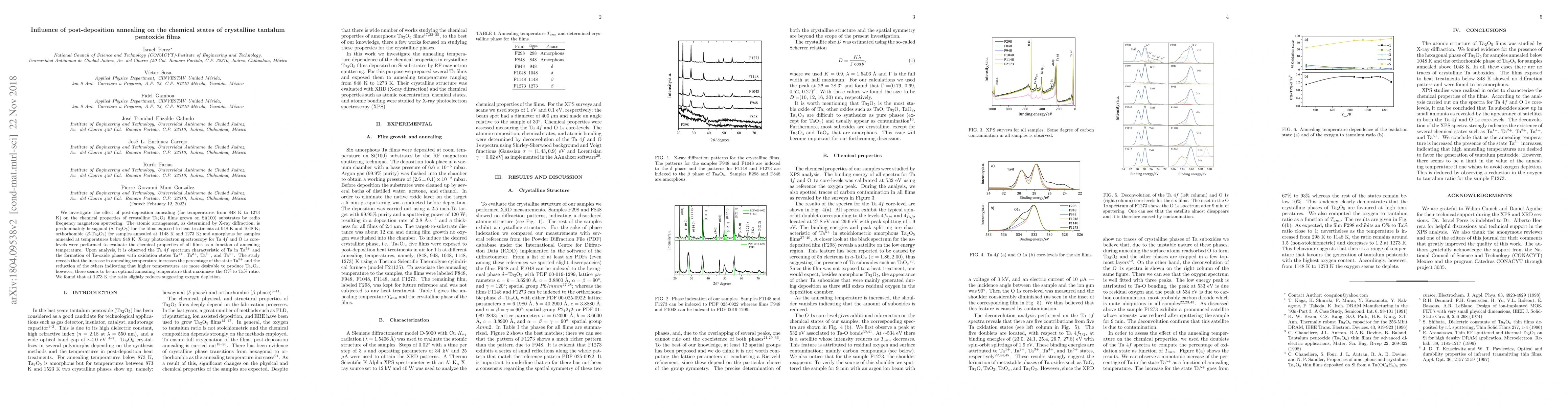 This paper explores how post-deposition annealing affects the chemical states of crystalline tantalum pentoxide (Ta$_2$O$_5$) films deposited on Si(100) substrates. Higher annealing temperatures favor the formation of Ta$^{5+}$ and reduce lower oxidation states, but an optimal temperature exists to maximize the O/Ta ratio, with 1273 K showing slight oxygen depletion.