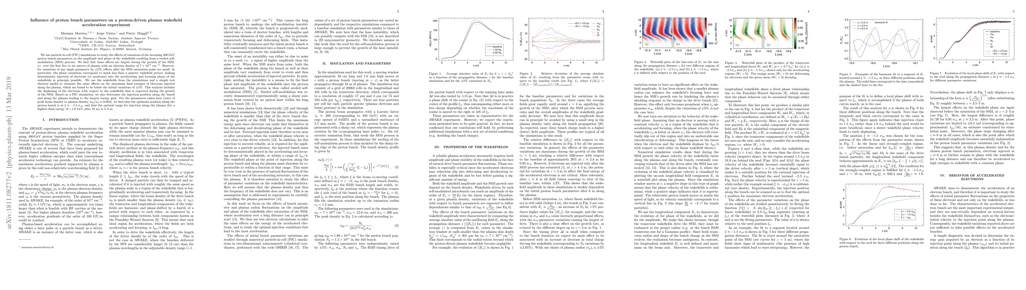 This study uses particle-in-cell simulations to investigate how proton bunch parameters affect plasma wakefield acceleration. It finds that variations in these parameters have a significant impact on the amplitude and phase of the wakefields during the growth of seeded self-modulation, but minimal effect after saturation.