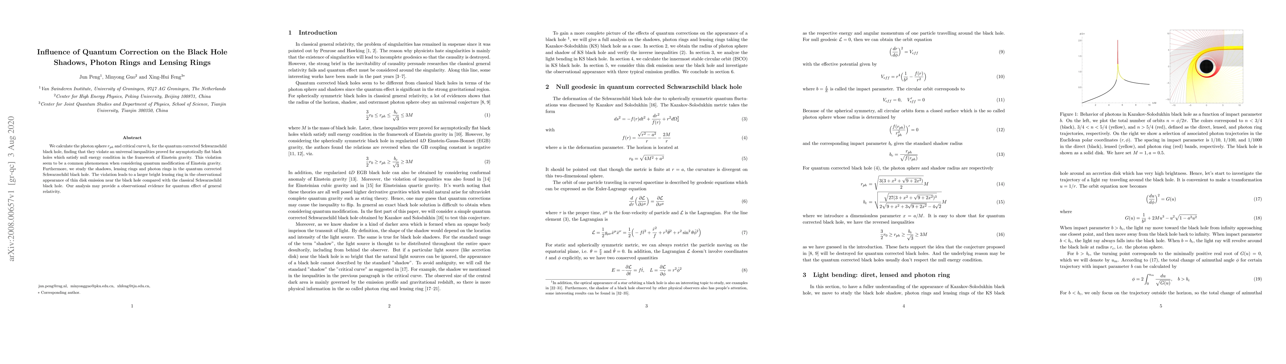 This paper investigates the impact of quantum corrections on Schwarzschild black holes, revealing violations of universal inequalities and larger bright lensing rings compared to classical models. The findings suggest potential observational evidence for quantum modifications in general relativity.
