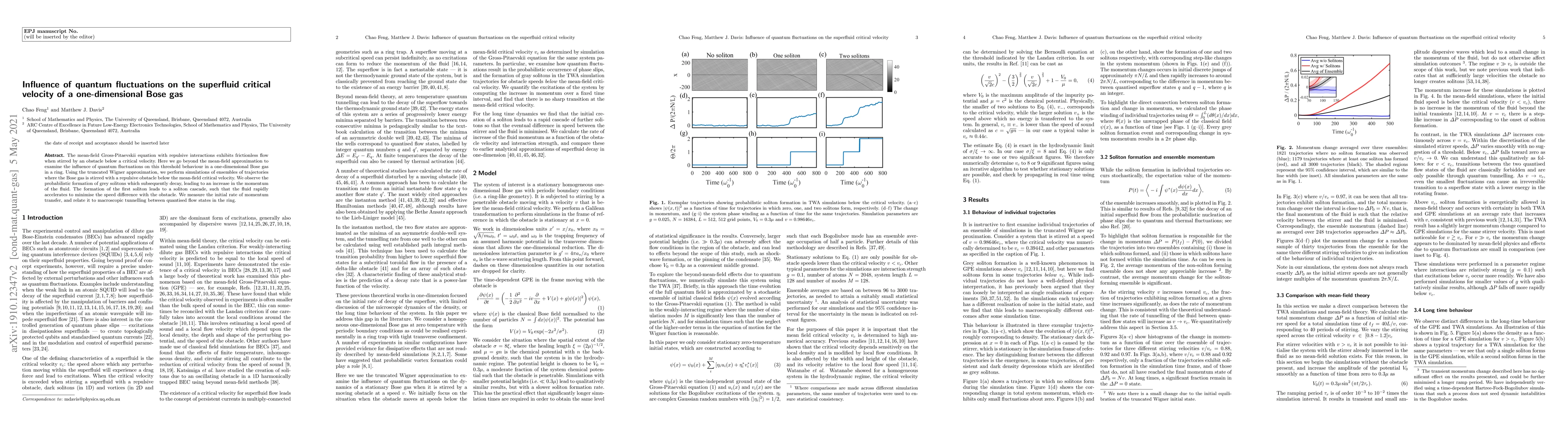 This paper investigates the impact of quantum fluctuations on the superfluid critical velocity in a one-dimensional Bose gas. Using the truncated Wigner approximation, simulations reveal that quantum effects induce the formation and decay of grey solitons, leading to accelerated momentum transfer and a soliton cascade that minimizes the velocity difference with a moving obstacle.