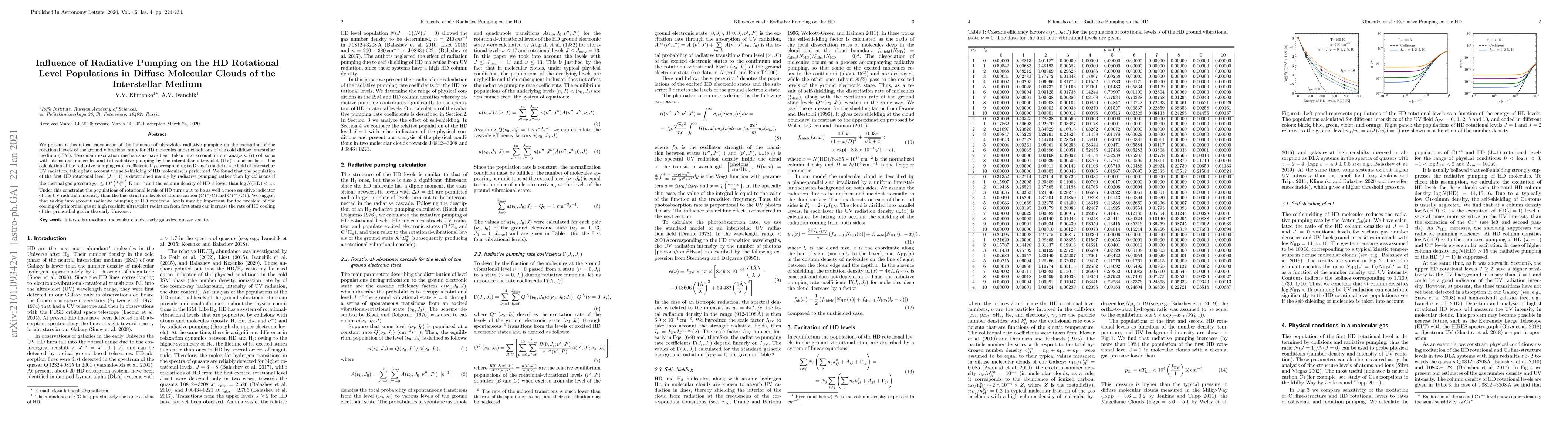 This paper investigates the impact of ultraviolet radiative pumping on the rotational level populations of HD molecules in cold diffuse interstellar medium, comparing it to collisional excitation. It finds that radiative pumping significantly influences the first HD rotational level, especially under low thermal gas pressure and HD column density, suggesting its importance in the cooling of primordial gas in the early Universe.