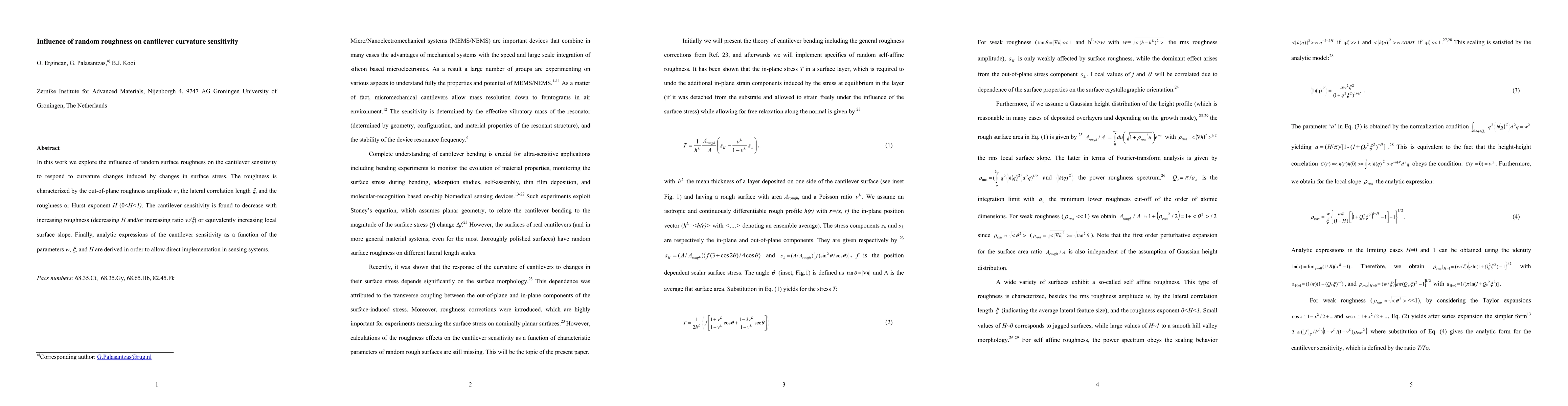 surface stress. The roughness is characterized by the out-of-plane roughness
