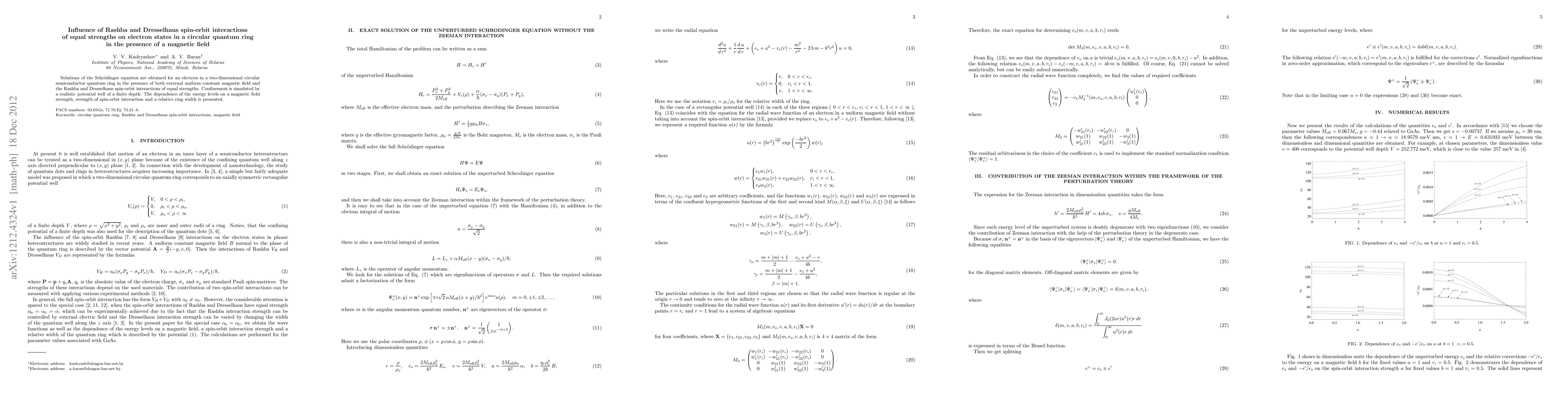 The paper presents an exact analytical solution for electron states in a quantum ring under specified conditions, incorporating both spin-orbit interactions and a magnetic field.