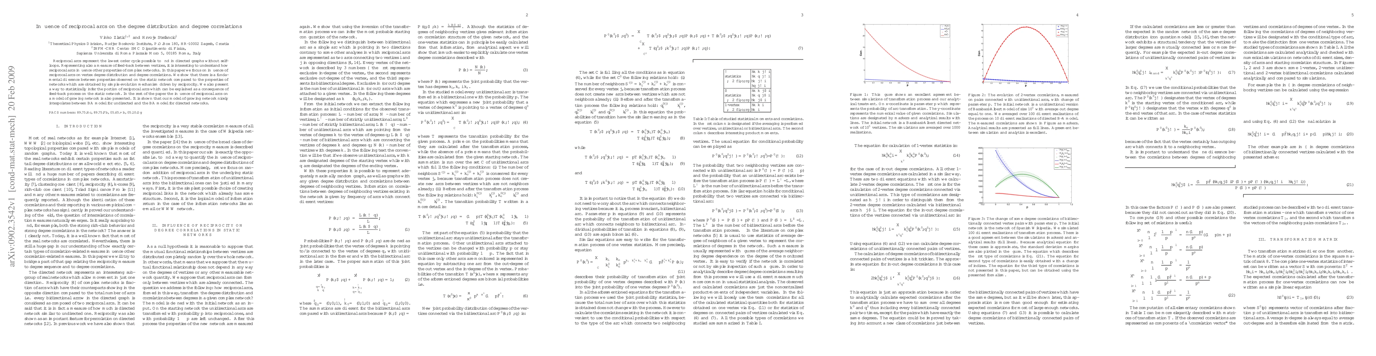 Reciprocal arcs represent the lowest order cycle possible to find in directed graphs without self-loops. Representing also a measure of feed-back between vertices, it is interesting to understand how reciprocal arcs influence other properties of complex networks. In this paper we focus on influence of reciprocal arcs on vertex degree distribution and degree correlations. We show that there is a fundamental difference between properties observed on the static network compared to the properties of networks which are obtained by simple evolution mechanism driven by reciprocity. We also present a way to statistically infer the portion of reciprocal arcs which can be explained as a consequence of feed-back process on the static network. In the rest of the paper the influence of reciprocal arcs on a model of growing network is also presented. It is shown that our model of growing network nicely interpolates between BA model for undirected and the BA model for directed networks.