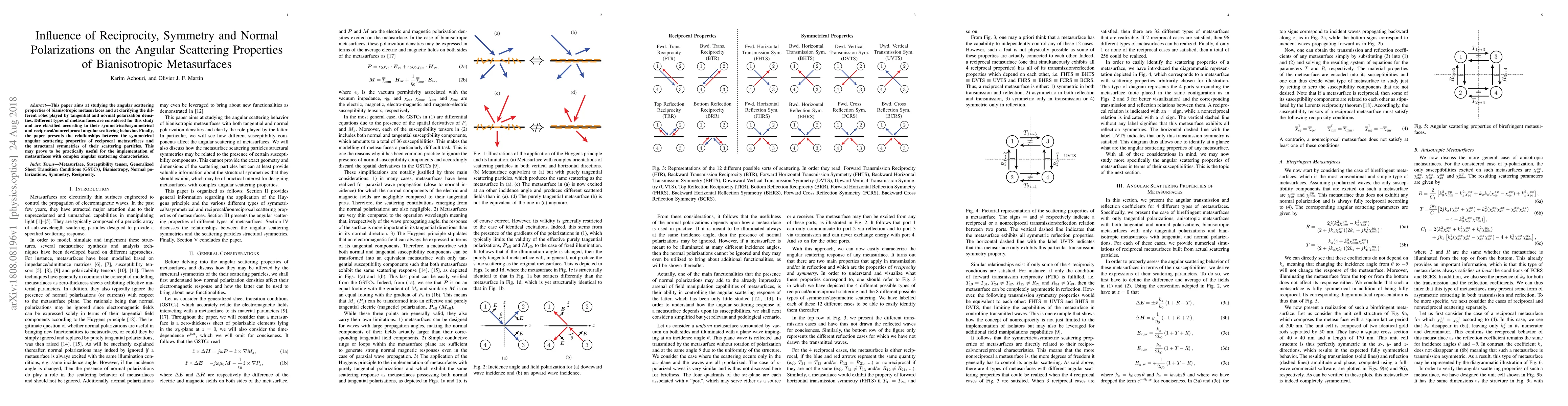 This paper aims at studying the angular scattering properties of bianisotropic metasurfaces and at clarifying the different roles played by tangential and normal polarization densities. Different types of metasurfaces are considered for this study and are classified according to their symmetrical/asymmetrical and reciprocal/nonreciprocal angular scattering behavior. Finally, the paper presents the relationships between the symmetrical angular scattering properties of reciprocal metasurfaces and the structural symmetries of their scattering particles. This may prove to be practically useful for the implementation of metasurfaces with complex angular scattering characteristics.