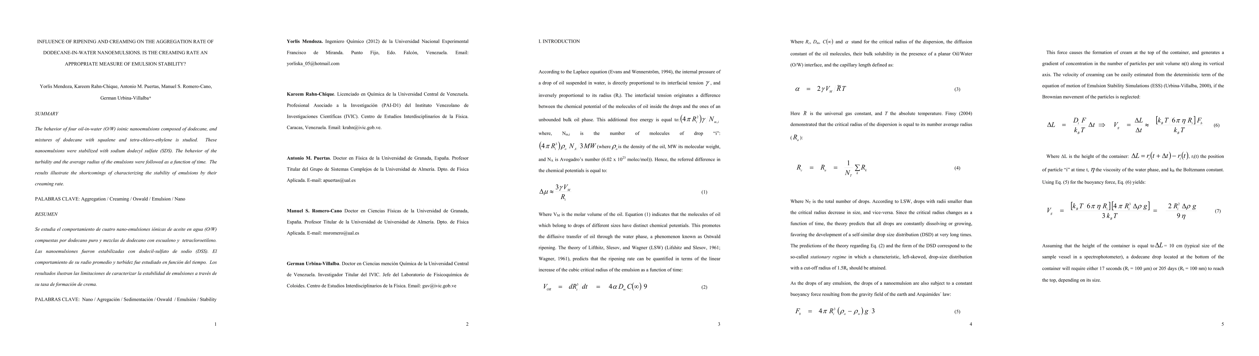 This study investigates the aggregation and creaming behaviors of dodecane-in-water nanoemulsions stabilized by SDS, revealing that creaming rate is not a reliable measure of emulsion stability. The research highlights the importance of considering both ripening and aggregation processes in assessing emulsion stability.