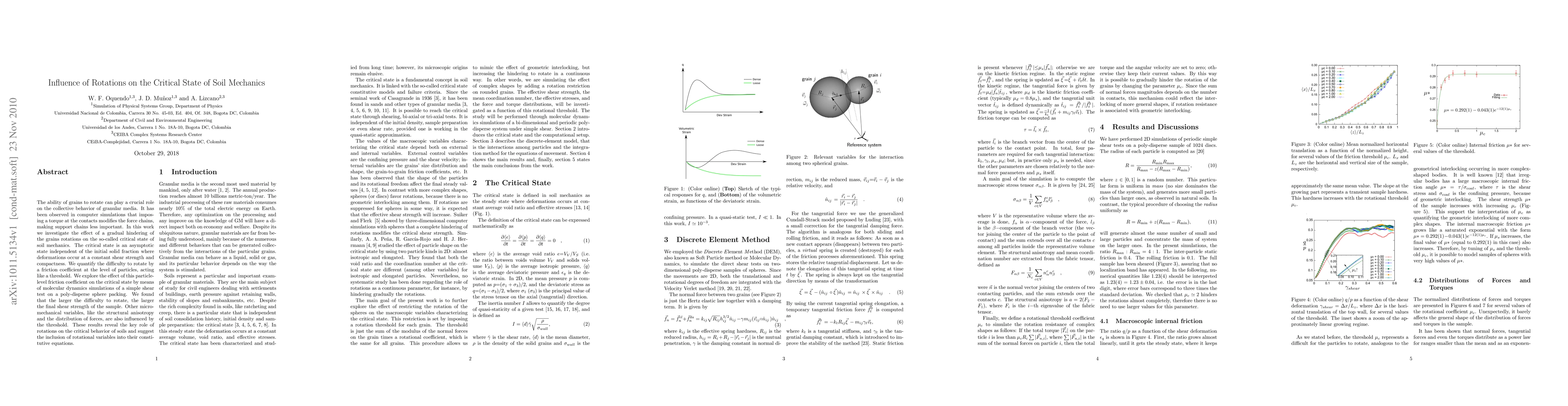 Research shows that making it harder for grains to rotate in soil increases its shear strength, with larger friction coefficients leading to higher final strengths. This suggests a key role for rotations in the critical behavior of soils.