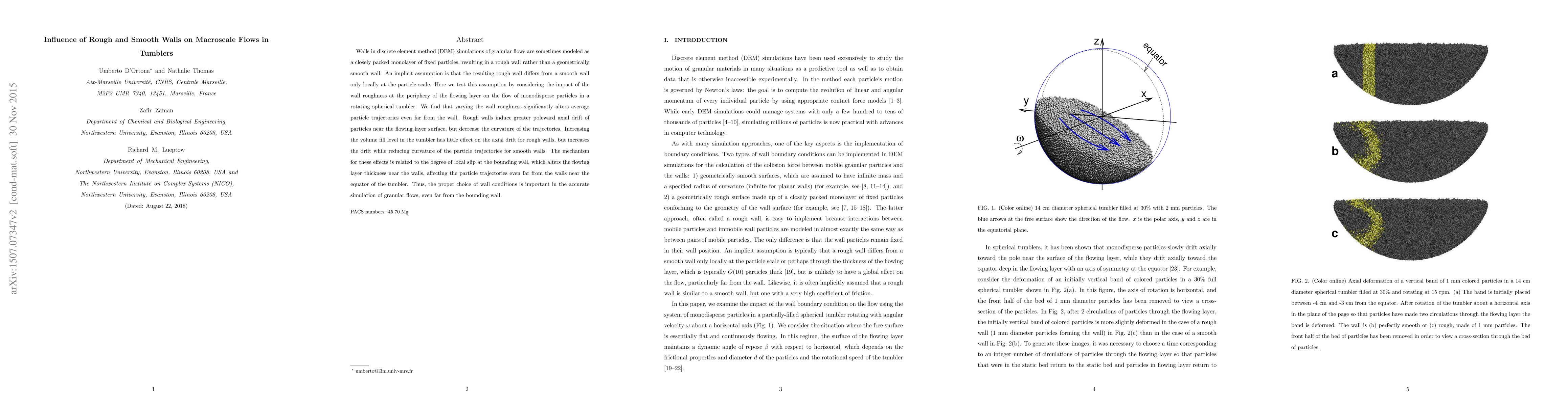 Researchers found that rough walls in a rotating tumbler significantly alter particle trajectories, increasing poleward axial drift and decreasing curvature, while smooth walls have less effect on these variables.