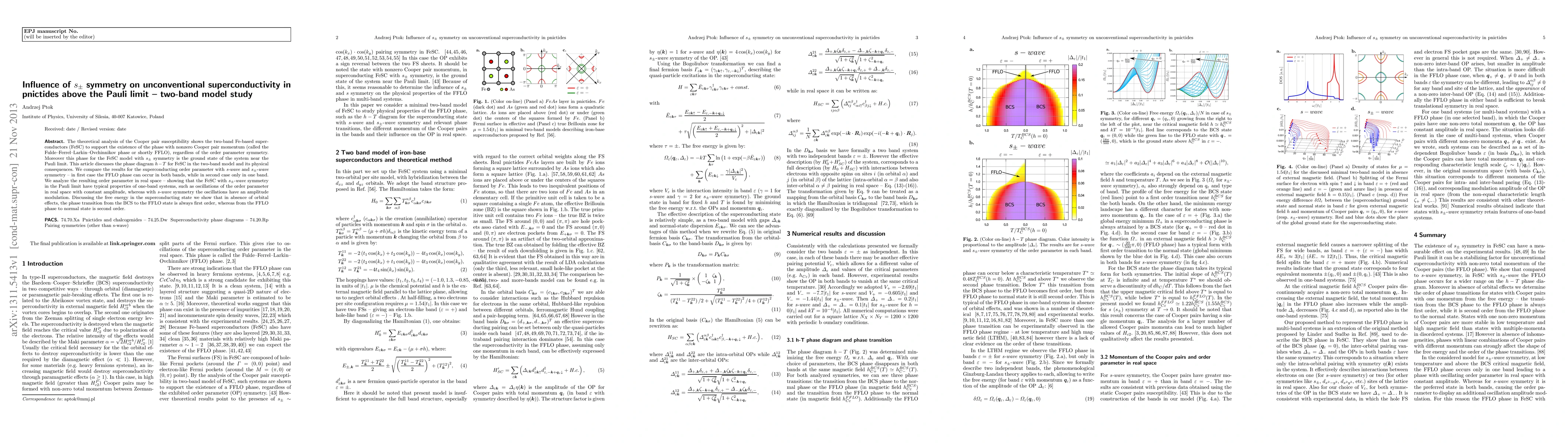 This paper explores the influence of $s_{\pm}$ symmetry on unconventional superconductivity in Fe-based pnictides, demonstrating that the Fulde-Ferrel-Larkin-Ovchinnikov phase can exist near the Pauli limit. It finds that $s_{\pm}$ symmetry leads to the FFLO phase being the ground state and exhibits one-band system properties, unlike s-wave symmetry.