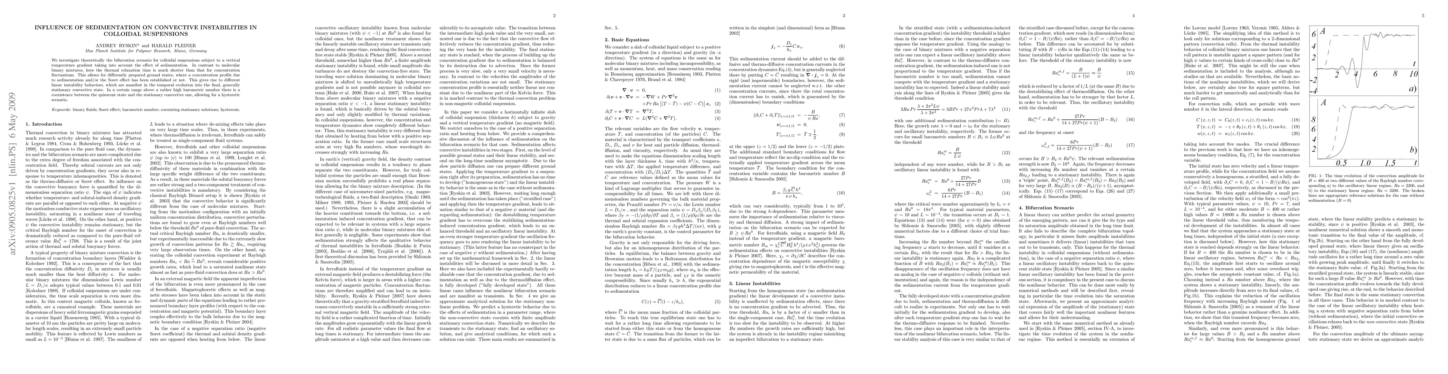 The paper presents a theoretical framework for understanding the interplay between sedimentation and convective instabilities in colloidal suspensions, extending previous work on molecular binary mixtures.
