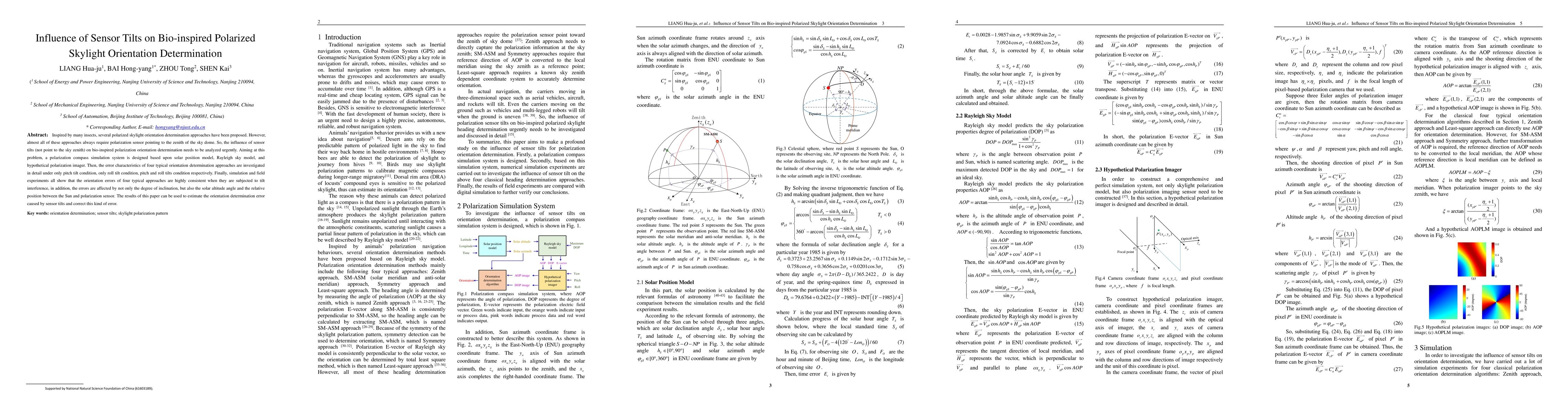 This research analyzes the impact of sensor tilts on bio-inspired polarized skylight orientation determination, using a simulation system. Findings reveal that tilt errors affect all four tested approaches similarly, influenced by tilt degree, solar altitude, and sensor-Sun relative position. The study's results can aid in error estimation and correction.