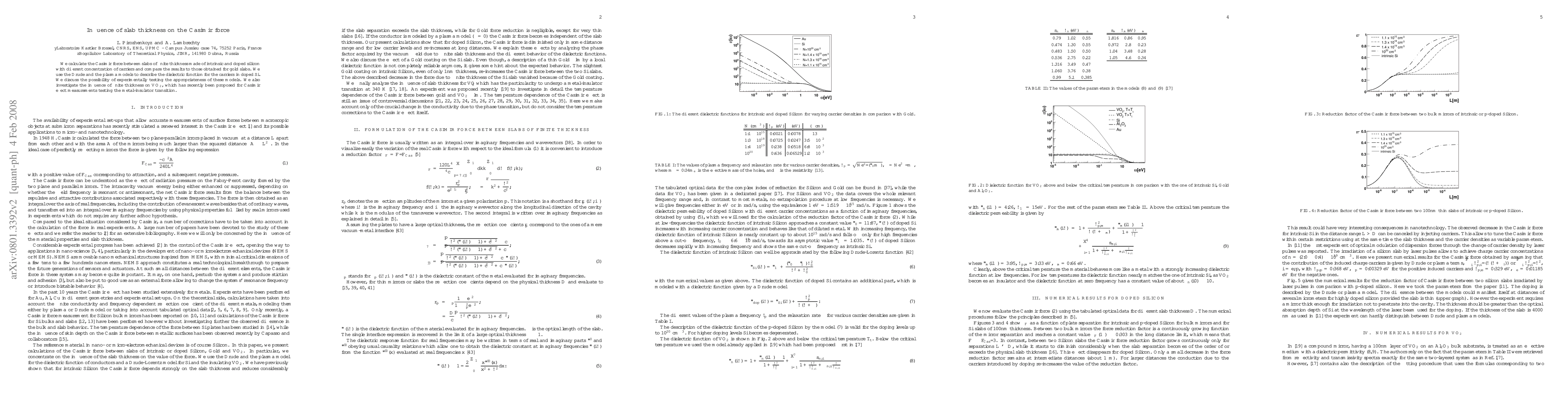 Researchers investigated how the thickness of slabs affects the Casimir force in silicon and gold materials, finding that finite thickness influences the results, especially in doped silicon.