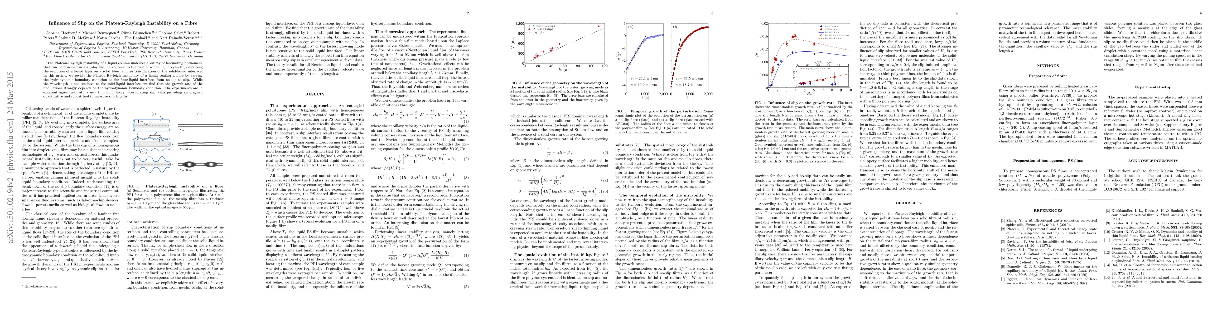 The Plateau-Rayleigh instability of a liquid column underlies a variety of fascinating phenomena that can be observed in everyday life. In contrast to the case of a free liquid cylinder, describing the evolution of a liquid layer on a solid fibre requires consideration of the solid-liquid interface. In this article, we revisit the Plateau-Rayleigh Instability of a liquid coating a fibre by varying the hydrodynamic boundary condition at the fibre-liquid interface, from no-slip to slip. While the wavelength is not sensitive to the solid-liquid interface, we find that the growth rate of the undulations strongly depends on the hydrodynamic boundary condition. The experiments are in excellent agreement with a new thin film theory incorporating slip, thus providing an original, quantitative and robust tool to measure slip lengths.