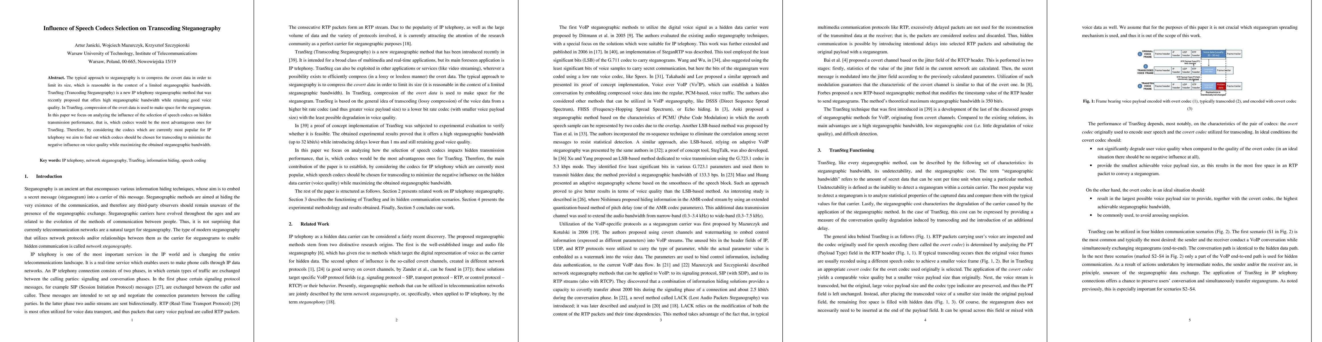 This paper investigates how different speech codecs affect the performance of TranSteg, a novel steganographic method for IP telephony, focusing on optimizing steganographic bandwidth while preserving voice quality. The study aims to identify the most suitable codecs for transcoding to achieve these goals.