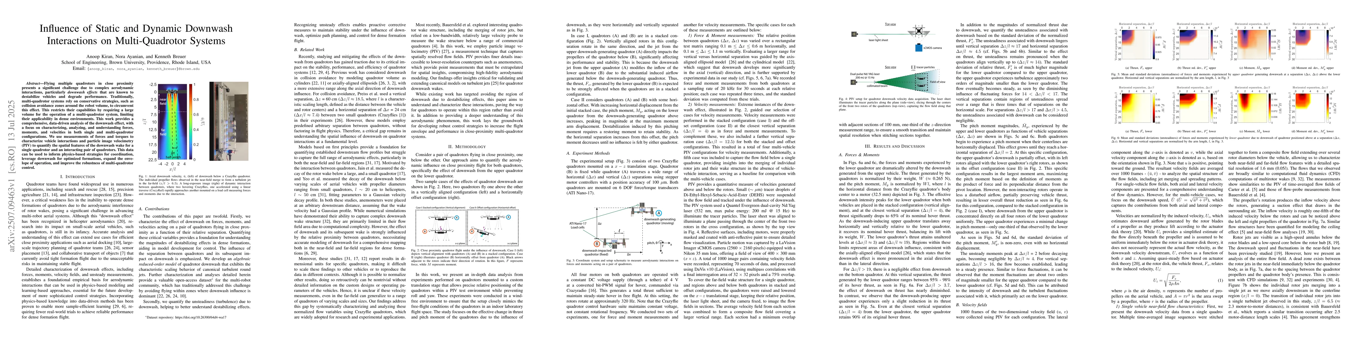 Flying multiple quadrotors in close proximity presents a significant challenge due to complex aerodynamic interactions, particularly downwash effects that are known to destabilize vehicles and degrade performance. Traditionally, multi-quadrotor systems rely on conservative strategies, such as collision avoidance zones around the robot volume, to circumvent this effect. This restricts their capabilities by requiring a large volume for the operation of a multi-quadrotor system, limiting their applicability in dense environments. This work provides a comprehensive, data-driven analysis of the downwash effect, with a focus on characterizing, analyzing, and understanding forces, moments, and velocities in both single and multi-quadrotor configurations. We use measurements of forces and torques to characterize vehicle interactions, and particle image velocimetry (PIV) to quantify the spatial features of the downwash wake for a single quadrotor and an interacting pair of quadrotors. This data can be used to inform physics-based strategies for coordination, leverage downwash for optimized formations, expand the envelope of operation, and improve the robustness of multi-quadrotor control.