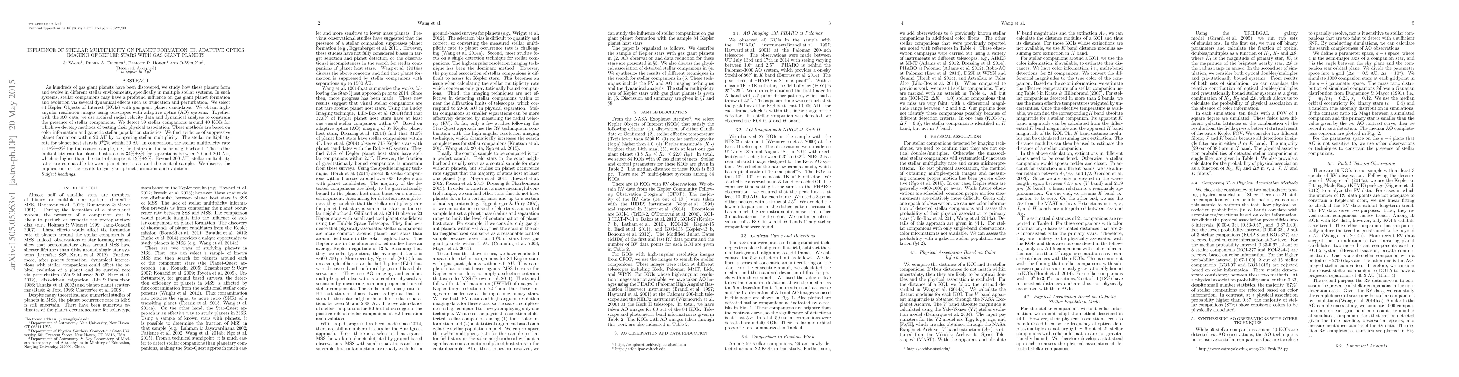This study investigates the influence of stellar multiplicity on gas giant planet formation using adaptive optics imaging of Kepler Objects of Interest (KOIs) with gas giant planets. The research finds a significantly lower multiplicity rate within 20 AU for planet host stars compared to field stars, suggesting suppression of planet formation in close stellar environments.
