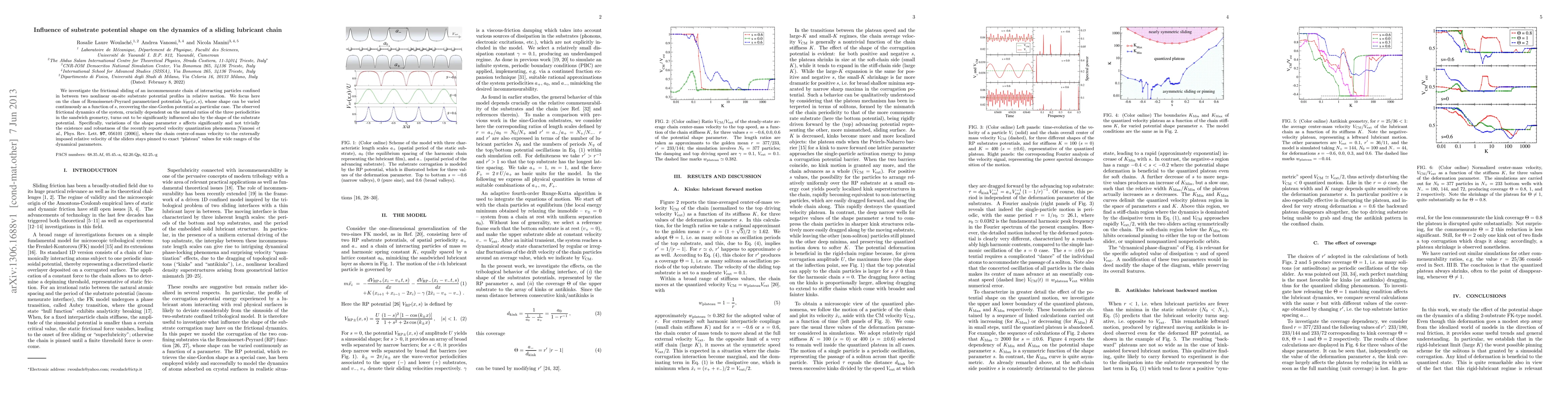 Research investigates how changing substrate potential shapes affects frictional dynamics of a sliding lubricant chain, finding that variations significantly influence velocity quantization phenomena.