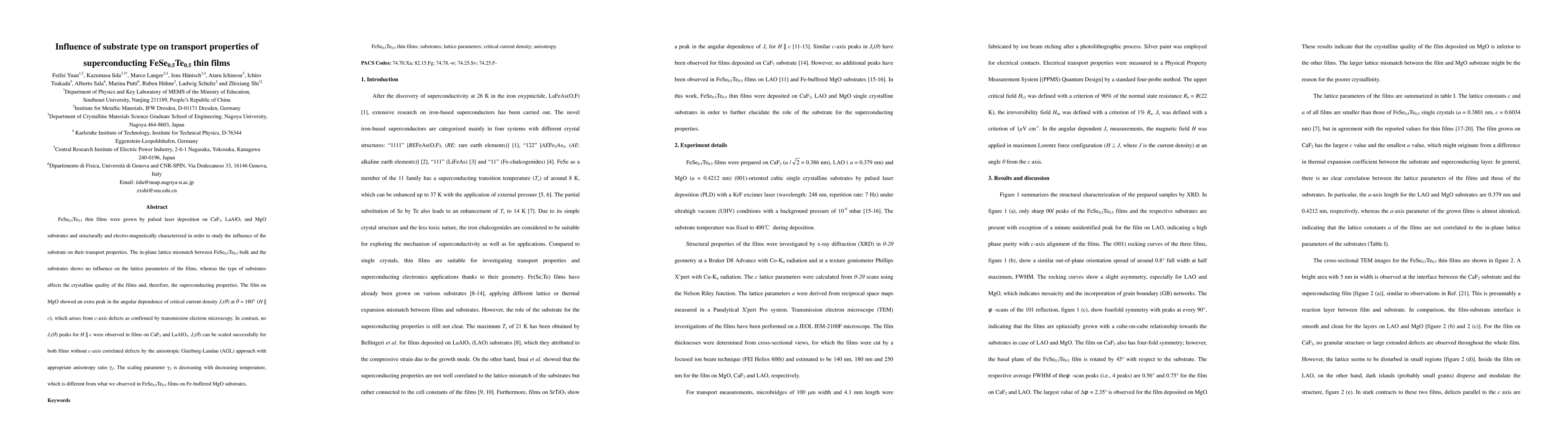 Researchers investigated how different substrates affect the transport properties of superconducting FeSe0.5Te0.5 thin films, finding that substrate type impacts crystalline quality and critical current density, but not lattice parameters.