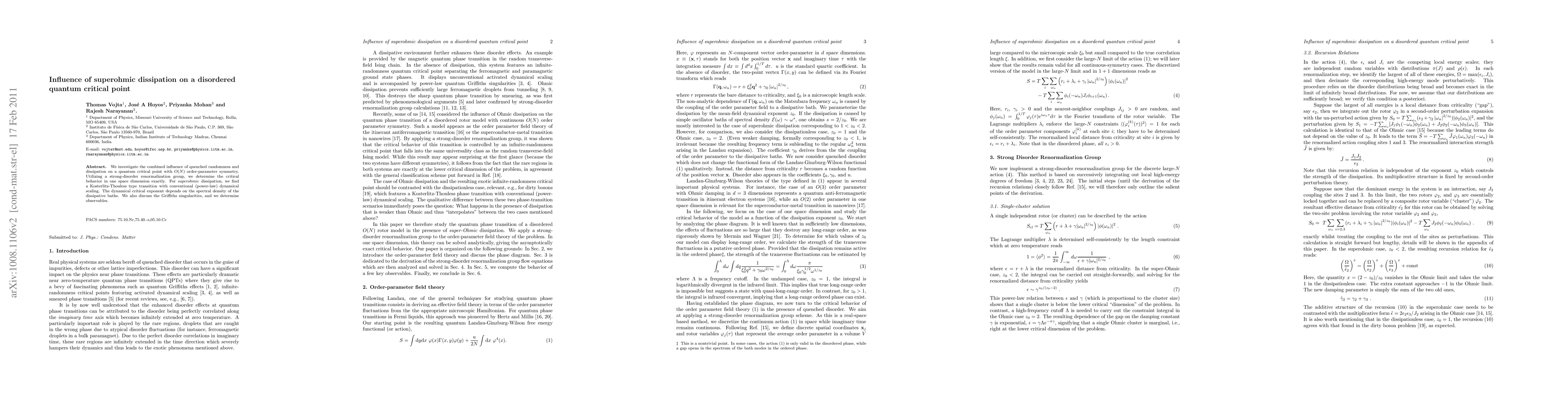 This paper investigates the effect of superohmic dissipation on a quantum critical point with O(N) order-parameter symmetry, finding a Kosterlitz-Thouless type transition with conventional dynamical scaling that depends on the spectral density of dissipative baths.