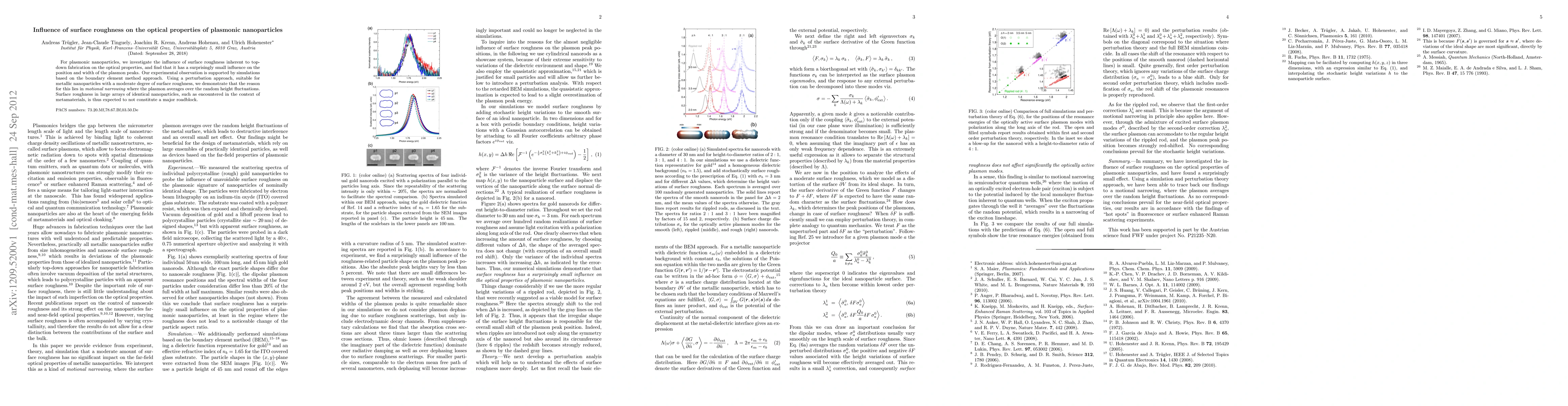 This study investigates how surface roughness from fabrication affects the optical properties of plasmonic nanoparticles, finding minimal impact on plasmon peak position and width due to motional narrowing. Simulations and experimental observations support the conclusion that surface roughness does not significantly hinder performance in large nanoparticle arrays.