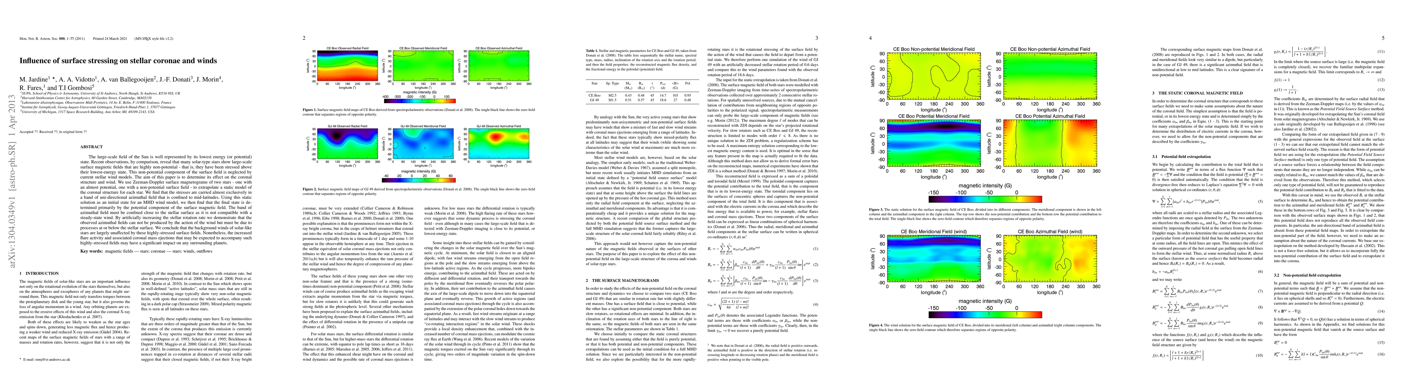 This paper investigates the influence of non-potential surface magnetic fields on stellar coronae and winds, finding that while these fields are confined to mid-latitudes and do not affect background winds, they may lead to increased flare activity and coronal mass ejections impacting surrounding planets.