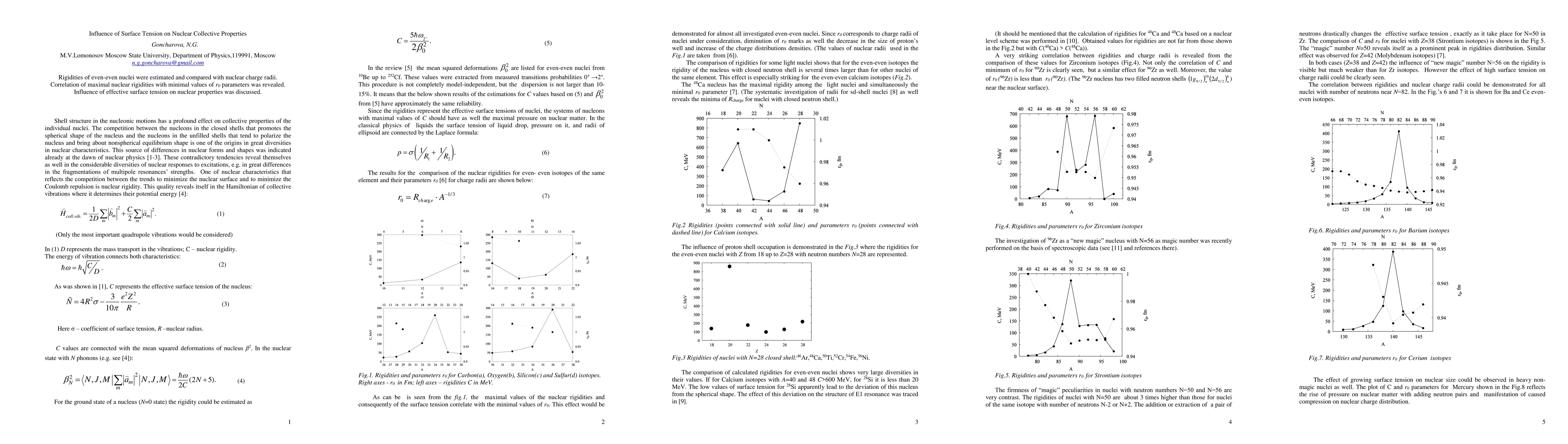 Rigidities of even-even nuclei were estimated and compared with nuclear charge radii. Correlation of maximal nuclear rigidities with minimal values of r0 parameters was revealed. Influence of effective surface tension on nuclear properties was discussed.