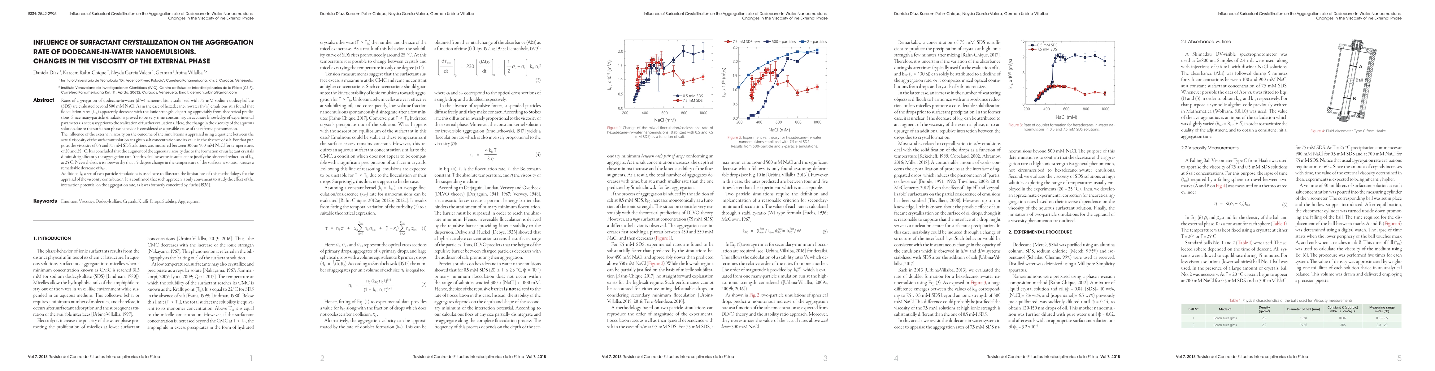 Rates of aggregation of dodecane-in-water (d/w) nanoemulsions stabilized with 7.5 mM sodium dodecylsulfate (SDS) are evaluated beyond 500 mM NaCl. As in the case of hexadecane-in-water (h/w) emulsions, it is found that flocculation rates apparently decrease with the ionic strength, departing appreciably from theoretical predictions. Since many-particle simulations proved to be very time consuming, an accurate knowledge of experimental parameters is necessary prior to the realization of further evaluations. Here, the change in the viscosity of the aqueous solution due to the surfactant phase behavior is considered as a possible cause of referred phenomenon. The influence of the external viscosity on the outcome of the simulations is appraised using a quotient between the actual viscosity of the surfactant solution at a given salt concentration and its value in the absence of salt. For that purpose, the viscosity of 0.5 and 7.5 mM SDS solutions was measured between 300 an 900 mM NaCl for temperatures of 20 and 25 {\deg}C. It is concluded that the augment of the aqueous viscosity due to the formation of surfactant crystals diminish significantly the aggregation rate. Yet this decline seems insufficient to justify the observed reduction of kFC at 25 C. Nevertheless, it is noteworthy that a 5-degree change in the temperature of the surfactant solution causes a remarkable decrease of kFC . Additionally, a set of two-particle simulations is used here to illustrate the limitations of this methodology for the appraisal of the viscosity contribution. It is confirmed that such approach is only convenient to study the effect of the interaction potential on the aggregation rate, as it was formerly conceived by Fuchs [1936].