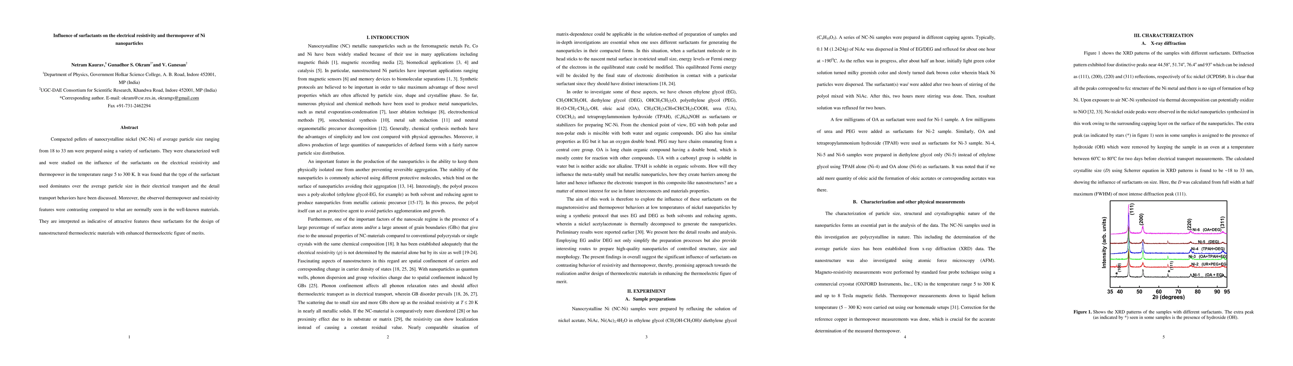 This paper investigates how different surfactants affect the electrical resistivity and thermopower of compacted pellets of nanocrystalline nickel nanoparticles. The study reveals that the type of surfactant used has a more significant influence on electrical transport properties than the particle size, suggesting potential for designing advanced thermoelectric materials.