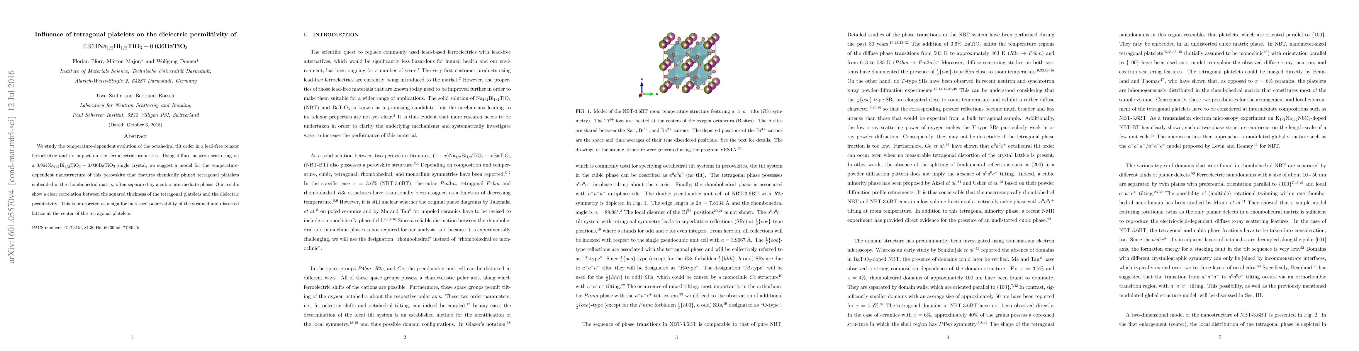 This study investigates the temperature-dependent octahedral tilt order in a lead-free relaxor ferroelectric, revealing a model with tetragonal platelets in a rhombohedral matrix. The research finds a strong correlation between the thickness of these platelets and the dielectric permittivity, indicating enhanced polarizability due to lattice strain and distortion.