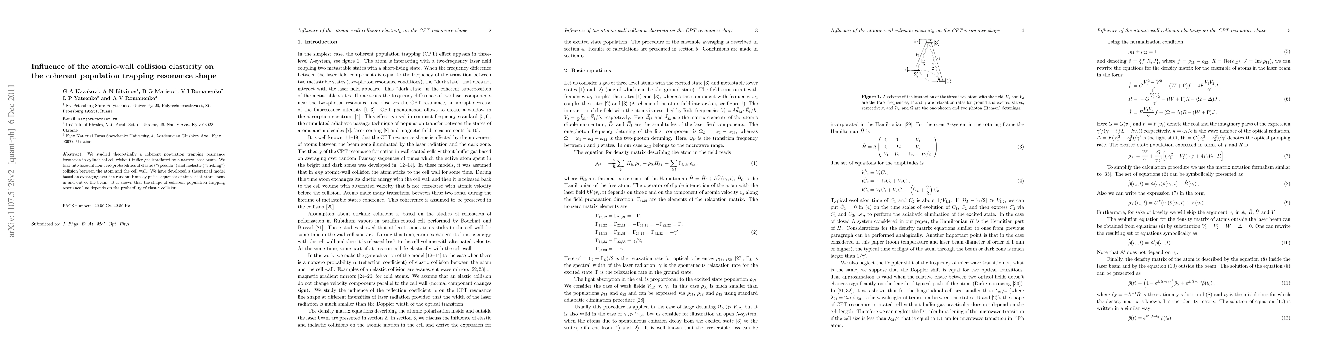 This research theoretically explores how the elasticity of atomic collisions with a cylindrical cell wall influences the shape of coherent population trapping resonances in an unbuffered gas, finding that the probability of elastic collisions affects the resonance line shape.