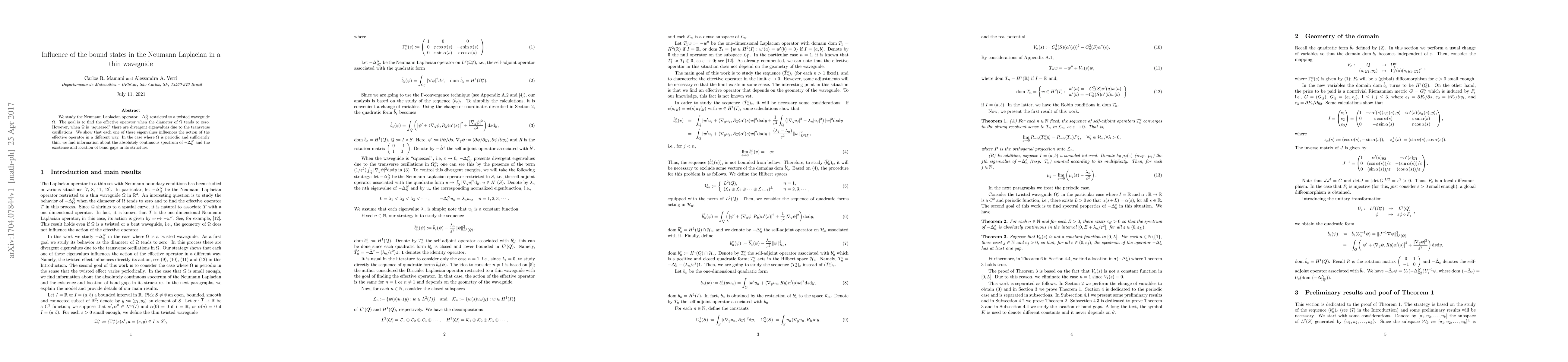 We study the Neumann Laplacian operator $-\Delta_\Omega^N$ restricted to a twisted waveguide $\Omega$. The goal is to find the effective operator when the diameter of $\Omega$ tends to zero. However, when $\Omega$ is "squeezed" there are divergent eigenvalues due to the transverse oscillations. We show that each one of these eigenvalues influences the action of the effective operator in a different way. In the case where $\Omega$ is periodic and sufficiently thin, we find information about the absolutely continuous spectrum of $-\Delta_\Omega^N$ and the existence and location of band gaps in its structure.