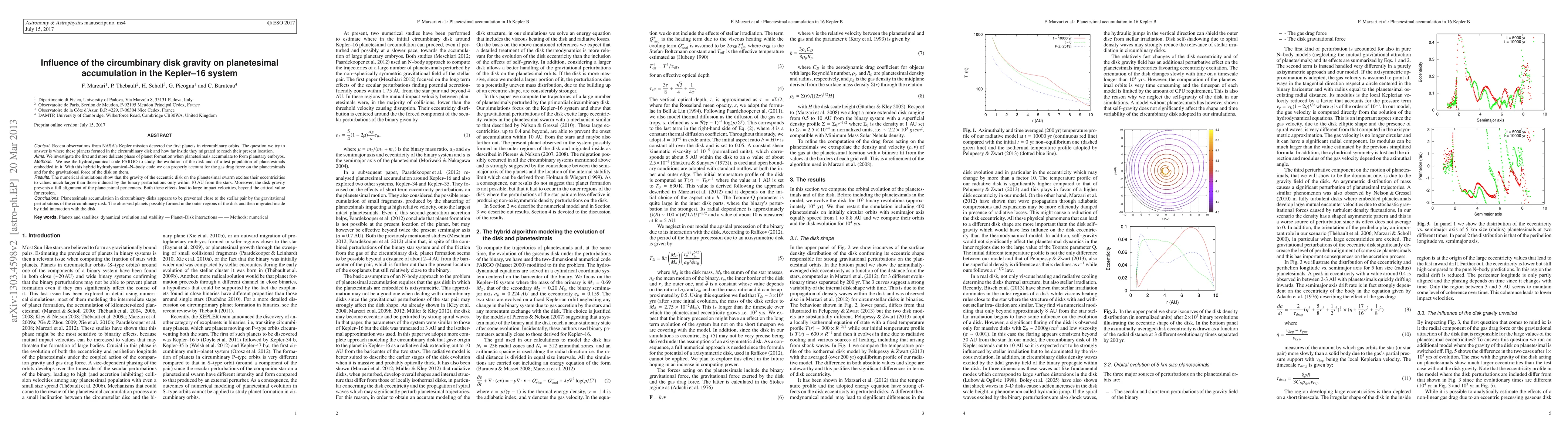 This research investigates the influence of circumbinary disk gravity on planetesimal accumulation in the Kepler 16 system, revealing that disk gravity significantly excites planetesimal eccentricities and prevents pericenter alignment, leading to high impact velocities that hinder accumulation near the stars. The study suggests observed planets likely formed farther out and migrated inward via tidal interactions.
