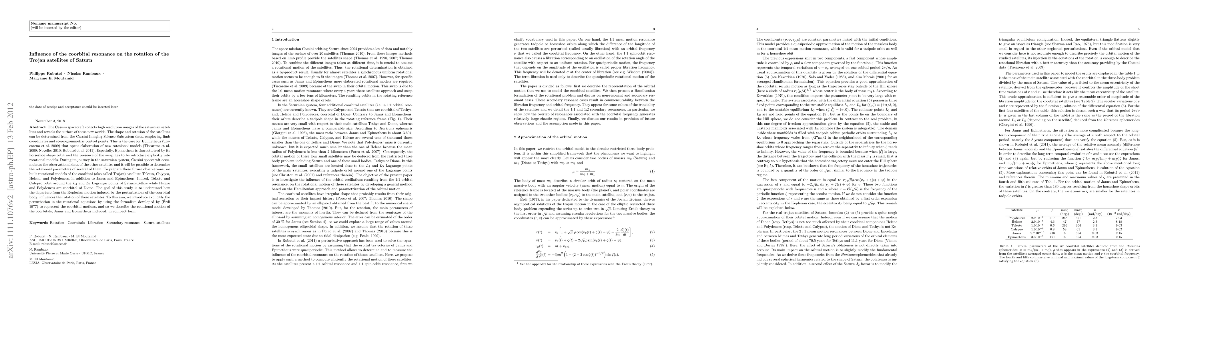 This study investigates how the coorbital resonance affects the rotation of Saturn's Trojan satellites, Telesto, Calypso, Helene, Polydeuces, Janus, and Epimetheus. The research employs Cassini data and rotational models to understand the influence of non-Keplerian perturbations on their rotational dynamics.