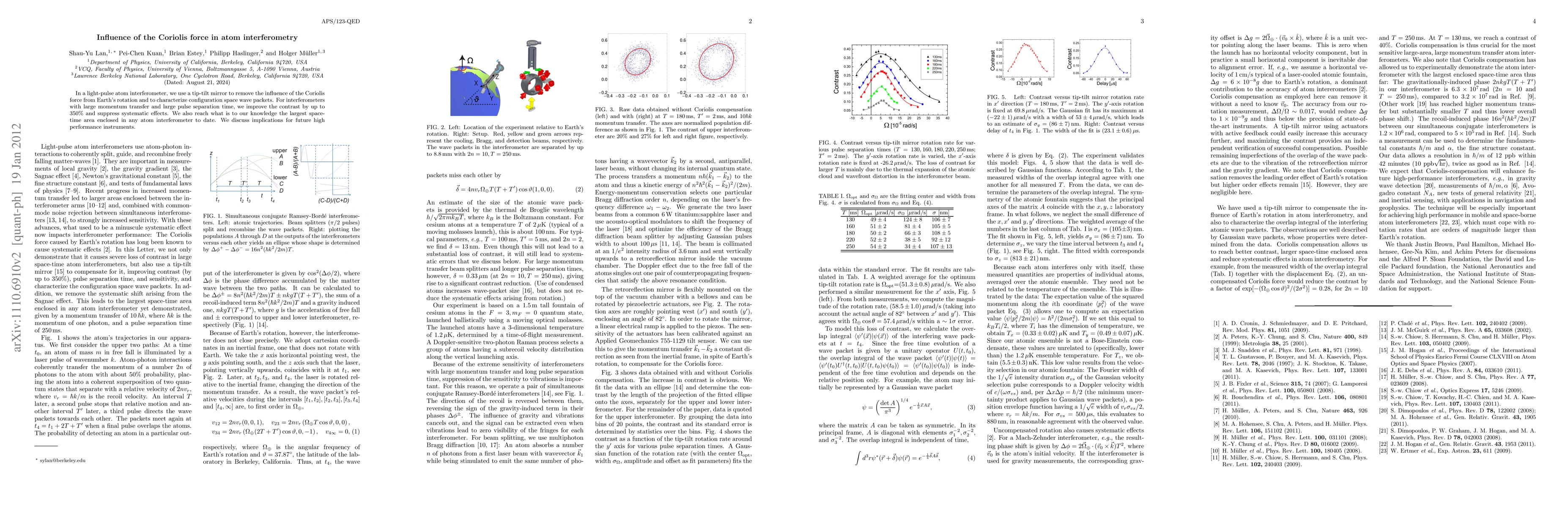 This paper investigates the influence of the Coriolis force in atom interferometry, achieving a 350% improvement in contrast by using a tip-tilt mirror to mitigate its effects. The study also records the largest spacetime area enclosed in an atom interferometer, with implications for future high-performance instruments.