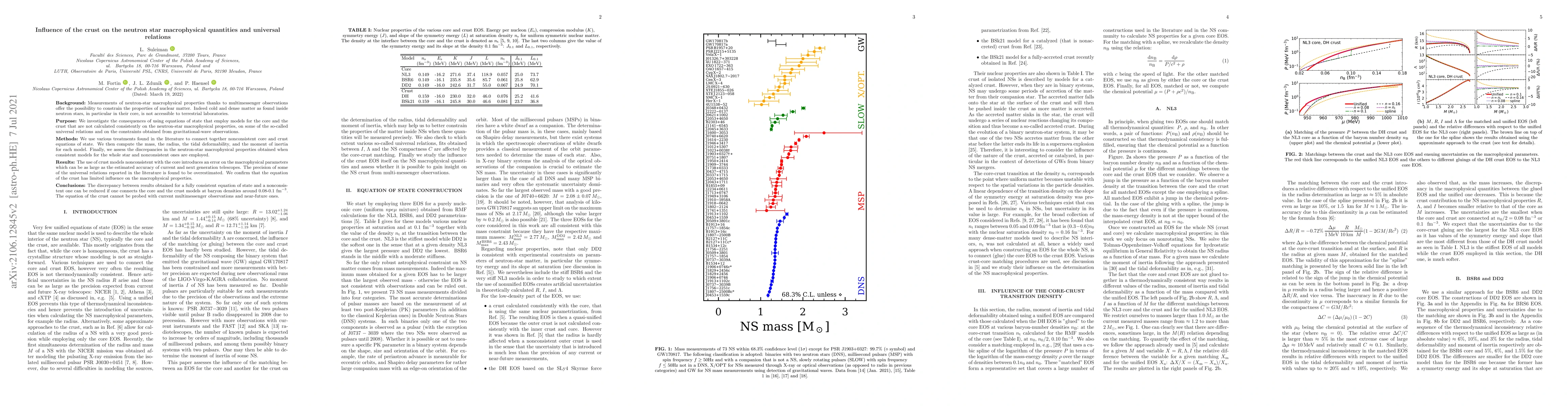 Measurements of neutron-star macrophysical properties thanks to multimessenger observations offer the possibility to constrain the properties of nuclear matter. Indeed cold and dense matter as found inside neutron stars, in particular in their core, is not accessible to terrestrial laboratories.We investigate the consequences of using equations of state that employ models for the core and the crust that are not calculated consistently on the neutron-star macrophysical properties, on some of the so-called universal relations and on the constraints obtained from gravitational-wave observations. We use various treatments found in the literature to connect together nonconsistent core and crust equations of state. We then compute the mass, the radius, the tidal deformability, and the moment of inertia for each model. Finally, we assess the discrepancies in the neutron-star macrophysical properties obtained when consistent models for the whole star and nonconsistent ones are employed. The use of crust models nonconsistent with the core introduces an error on the macrophysical parameters which can be as large as the estimated accuracy of current and next generation telescopes. The precision of some of the universal relations reported in the literature is found to be overestimated. We confirm that the equation of the crust has limited influence on the macrophysical properties. The discrepancy between results obtained for a fully consistent equation of state and a nonconsistent one can be reduced if one connects the core and the crust models at baryon densities around 0.08-0.1 fm$^{-3}$. The equation of the crust cannot be probed with current multimessenger observations and near-future ones.