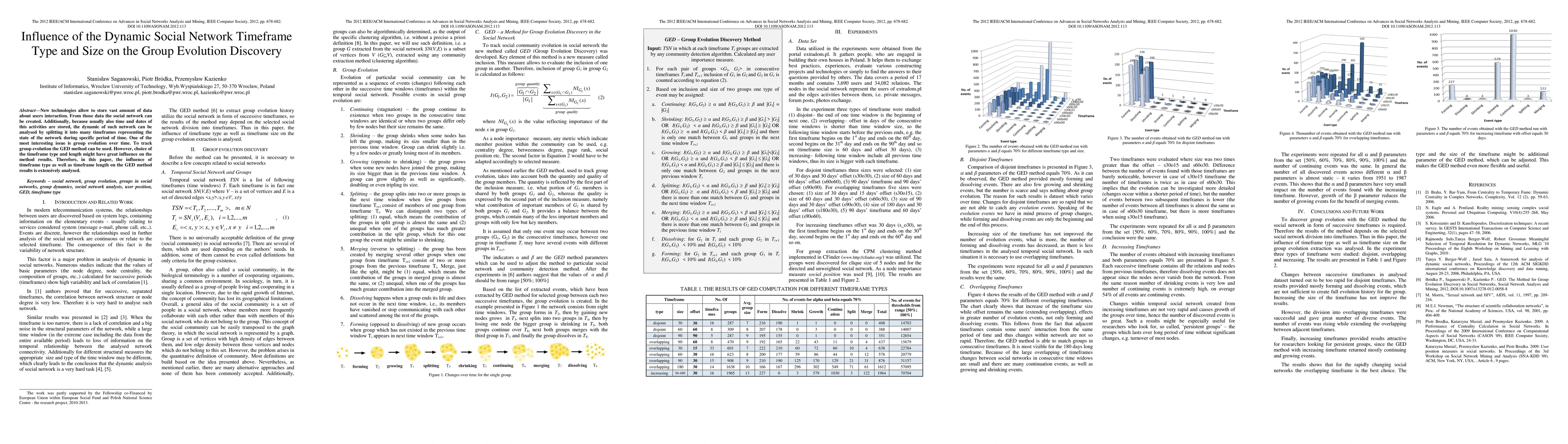 New technologies allow to store vast amount of data about users interaction. From those data the social network can be created. Additionally, because usually also time and dates of this activities are stored, the dynamic of such network can be analysed by splitting it into many timeframes representing the state of the network during specific period of time. One of the most interesting issue is group evolution over time. To track group evolution the GED method can be used. However, choice of the timeframe type and length might have great influence on the method results. Therefore, in this paper, the influence of timeframe type as well as timeframe length on the GED method results is extensively analysed.